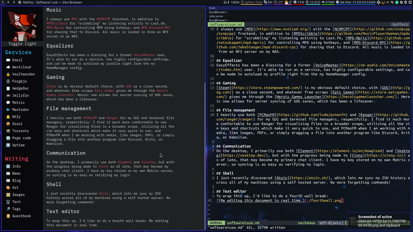 I edit all these blogs either right here in Neovim, or my own Hedgedoc instance.